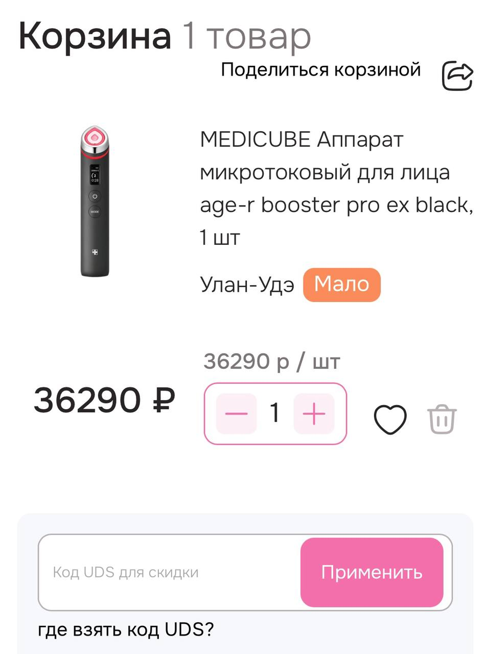 2. Введите код сертификата в поле "код UDS для скидки" при оформлении заказа на сайте и нажмите применить