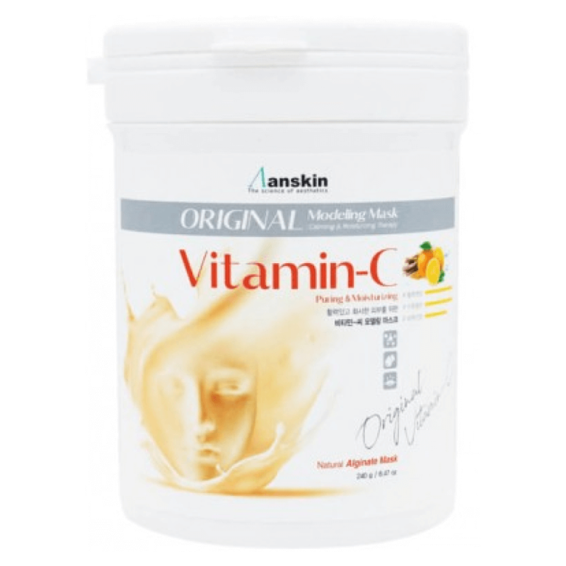Альгинатная маска Anskin Modeling Mask Vitamin-C Brightening & Moisturizing c витамином "С". Увлажняет и подтягивает кожу, осветляет пигментные пятна, выравнивает общий тон кожи, стимулирует синтез коллагена в клетках эпидермиса. Средство позволит добиться впечатляющего эффекта – увлажненная, подтянутая кожа приобретает ровный, сияющий цвет, становится нежной, гладкой, свежей. Витамин С в составе маски не вызывает раздражения, быстро усваивается и не распадается под воздействием температуры или взаимодействии с водой. Витамин С проникает через липидные слои и достигает мест своего непосредственного действия.