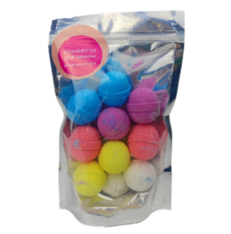 Конфетти - бомбочки от бренда DUSHA с ароматом "Ваниль-карамель" (очень приятный, похож на аромат солёной карамели). Бомбочки для ванны содержат морскую соль, соду и лимонную кислоту, благодаря которым средство хорошо очищает кожу и эффективно улучшает ее состояние. Масло бабассу и миндаля обеспечат коже питание и смягчение, а восхитительный аромат расслабит и поднимет настроение. Удовольствие обеспечено!