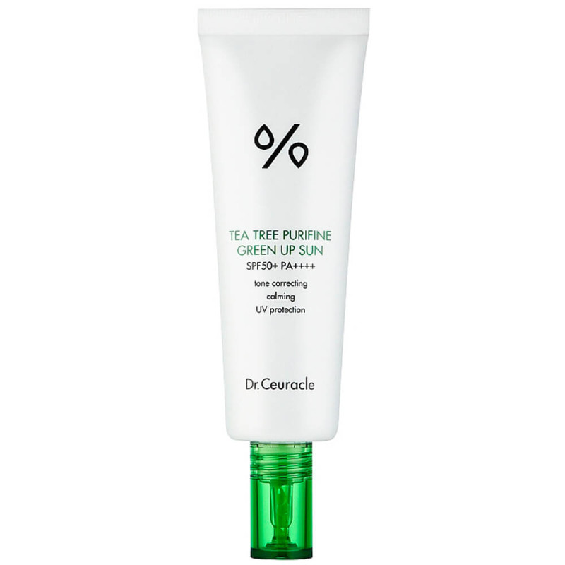 • Солнцезащитный крем для проблемной кожи Dr.Ceuracle Tea Tree Purifine Green Up Sun SPF50+ PA++++ оказывает заживляющее и успокаивающее действие, снимает зуд. Нормализует работу сальных желёз и контролирует выработку кожного сала в течение дня.