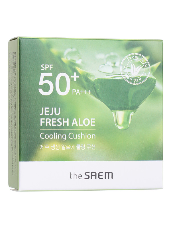 • Освежающий кушон с алоэ The Saem Jeju Fresh Aloe Cooling Cushion Natural Beige SPF50 обеспечивает ровное и безупречное покрытие, отлично подстраивается под цвет кожи. Кушон создает легкое и невесомое покрытие, при этом отлично скрывает все неровности кожи и несовершенства, выравнивает общий тон кожи и делает ее бархатистой.