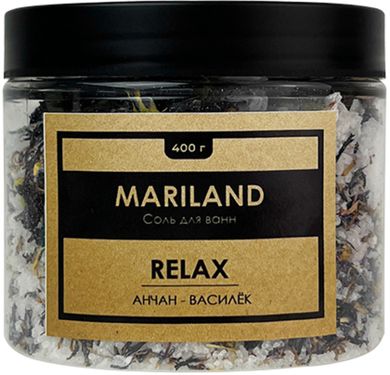 MARILAND Соль для ванн с лепестками василька и цветками анчана relax sea salt, 400 г