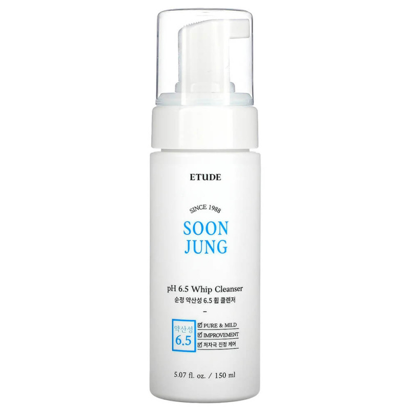 Пенка Etude House SoonJung pH 6.5 Whip Cleanser очищает поры, удаляет излишки себума и ороговевшие частицы, не вызывает раздражения, сухости и ощущения стянутости после умывания, прекрасно подходит для сухой, чувствительной и повреждённой кожи.