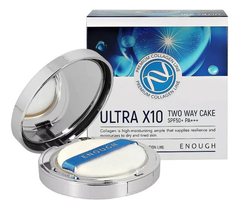ENOUGH Пудра 21+запасной блок с коллагеном two-way cake ultra x10, 12 г