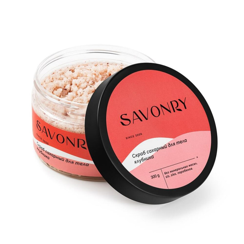 SAVONRY Скраб сахарный для тела клубника, 300 г