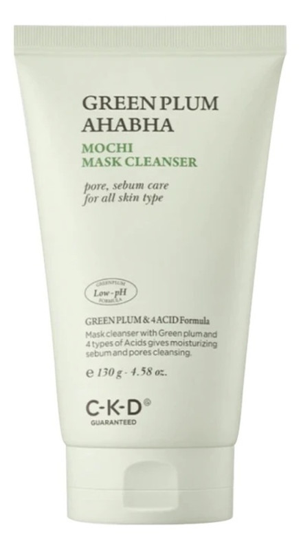 Очищающая маска с экстрактом зеленой сливы CKD Guaranteed Greenplum AHA BHA Mochi Mask Cleanser содержит AHA-, BHA-кислоты и натуральный экстракт зелёной сливы для бережного удаления чёрных точек, кожного сала и омертвевших клеток кожи, благодаря чему кожа становится заметно чище.