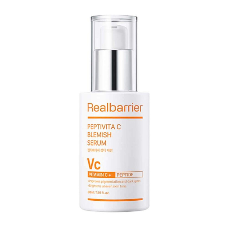Сыворотка Real Barrier Peptivita C Blemish Serum уменьшает выраженность пигментных пятен и постакне, избавляет от тусклости, выравнивает тон и придаёт здоровое сияние.