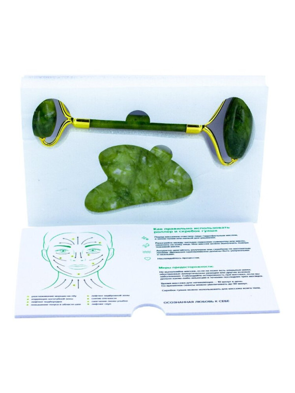 GUASHA Набор нефритовый (роллер 13,5*5,5 см,скребок 5*8см) в мягкой упаковке, 2 шт