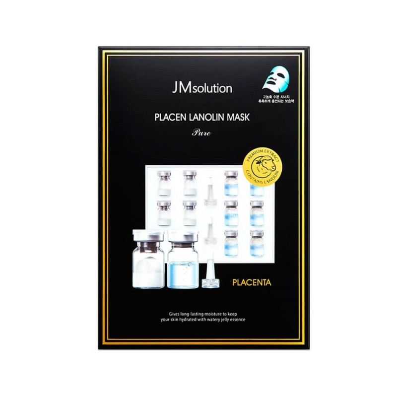 Плацентарная тканевая маска с ланолином JMSolution Placen Lanolin Mask Pure интенсивно увлажняет и восстанавливает кожу, укрепляет структуру эпидермиса, возвращает гладкость, эластичность и естественное здоровое сияние.
