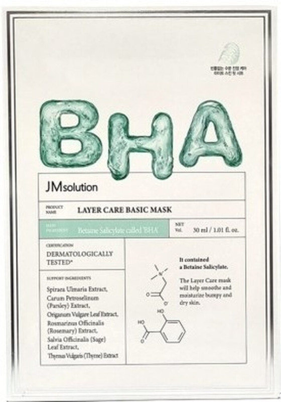 JM SOLUTION Маска с bha-кислотой layer care basic mask, 30 мл