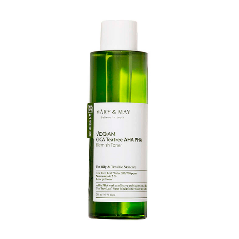 MARY&MAY Тонер с экстрактом центеллы азиатской vegan cica tea tree aha pha toner, 200 мл