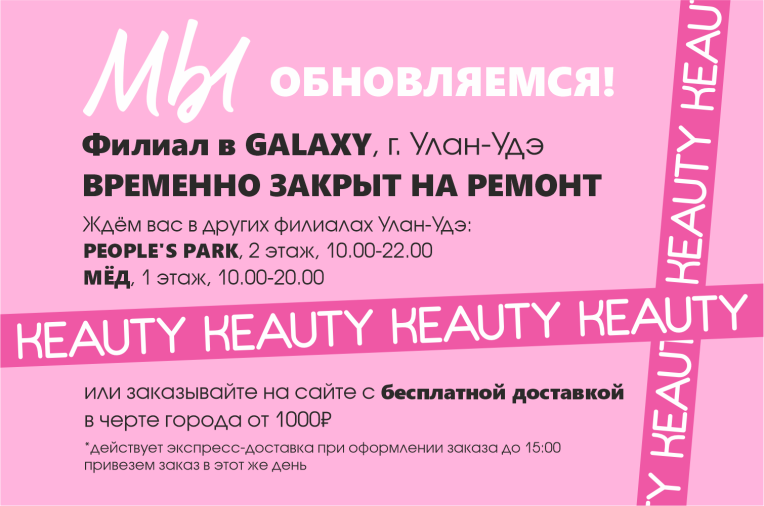 Мы продолжаем обновляться и становиться всё лучше и лучше для вас, наши дорогие покупатели🫶🏻 Наш филиал в GALAXY ждут классные перемены - больше пространства, больше косметики и, конечно, больше розового цвета🩷🩷🩷
