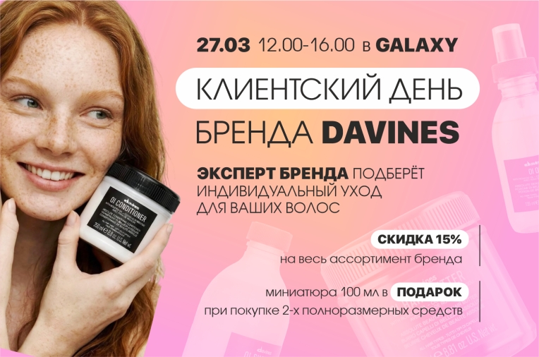 - скидка 15% на все продукты DAVINES весь день*