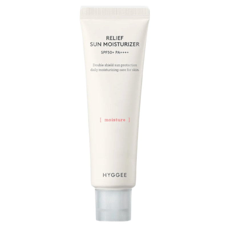 Увлажняющий солнцезащитный крем с успокаивающим действием Hyggee Relif Sun Moisturizer SPF50+ PA++++ обладает высокой степенью защиты от разрушающего действия ультрафиолета, отлично избавляет от сухости и шелушением.