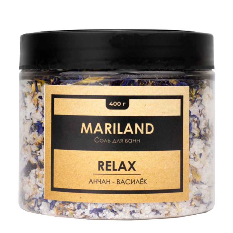 MARILAND Соль для ванн с лепестками василька и цветками анчана relax sea salt, 400 г