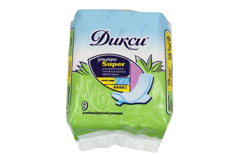 ДИКСИ Прокладки гигиенические "ультра супер люкс" 4 капли, 9 шт