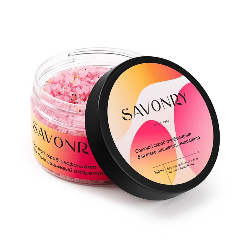 SAVONRY Скраб-эксфолиант соляной для тела вишневый амаретто, 250 мл