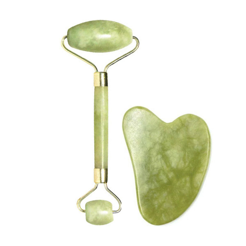 Массажный роллер и большой скребок из натурального нефрита активизируют движение крови и лимфатической системы, снимают отечность, ускоряют регенерацию клеток, способствуют подтяжке кожи лица.