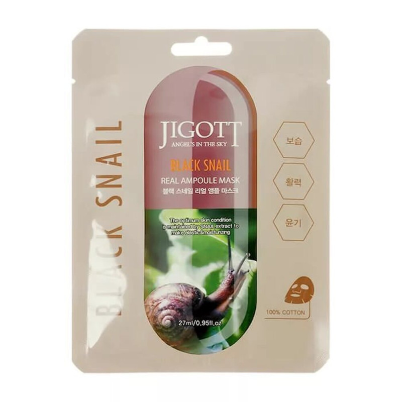 JIGOTT Маска тканевая с муцином улитки black snail real ampoule mask, 27 мл