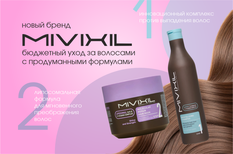 MIVIXIL - российский бренд с корейскими формулами для ухода и заботы за волосами. Бренд для тех, кто выбирает осознанный уход без перегруза: рабочие формулы, эстетика и доступные цены.