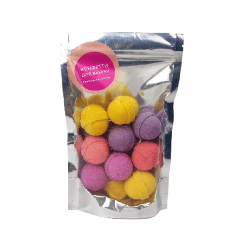 • Конфетти - бомбочки от бренда DUSHA с ароматом "Ваниль-карамель" (очень приятный, похож на аромат солёной карамели). Бомбочки для ванны содержат морскую соль, соду и лимонную кислоту, благодаря которым средство хорошо очищает кожу и эффективно улучшает ее состояние. Масло бабассу и миндаля обеспечат коже питание и смягчение, а восхитительный аромат расслабит и поднимет настроение. Удовольствие обеспечено!