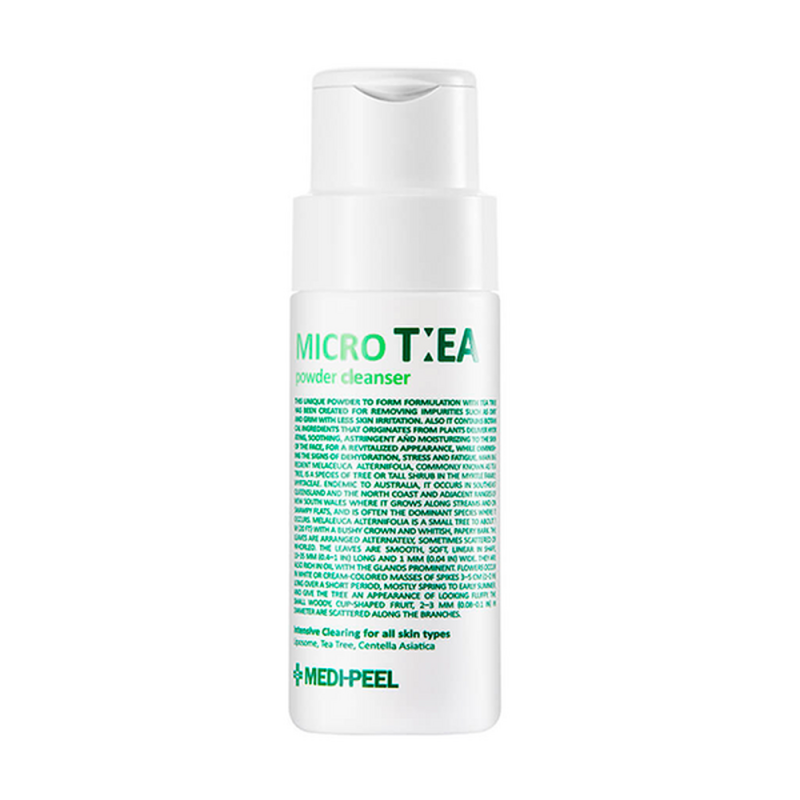Глубоко очищающая энзимная пудра с чайным деревом Medi-Peel Micro Tea Powder Cleanser обеспечивает интенсивное очищение не пересушивая кожу. Удаляет все виды загрязнений, пыль, излишки себума и стойкий макияж, растворяет сальные пробки, устраняет жирный блеск. Регулирует выработку кожного сала, сужает поры и выравнивает микрорельеф. Содержит комплекс центеллы азиатской и 6 видов гиалуроновой кислоты.