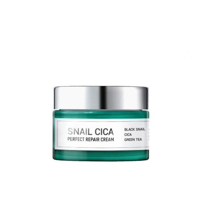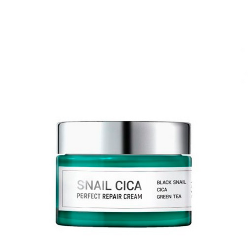 Восстанавливающий крем с муцином улитки и центеллой Esthetic House Snail Cica Perfect Repair Cream помогает справиться с акне, угревой сыпью и другими высыпаниями, нормализует секрецию сальных желез, уменьшает выделение кожного жира, сужает поры, уменьшает видимость пост-акне, рубцов, пигментации, уменьшает покраснения, выравнивает и освежает цвет лица.
