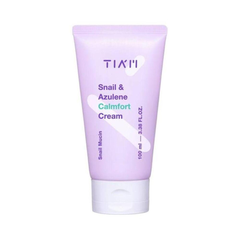 Успокаивающий крем с муцином улитки и азуленом TIAM Snail & Azulene Calmfort Cream быстро и действенно снимает раздражения, жжение и зуд, обеспечивает дополнительный антибактериальный и противовоспалительный эффекты, защищает клетки от разрушения свободными радикалами, смягчает кожный покров, разглаживая любые неровности, заполняя трещины и сухие заломы, способствует активному увлажнению, восстановлению гидролипидного баланса и укреплению защитного барьера.