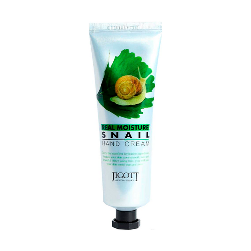 Крем для рук JIGOTT Real Moisture Snail с экстрактом муцина улитки позволит вашим ручкам приобрести поистине королевский вид. Высокая концентрация экстракта муцина улитки в составе крема делает его настоящим питательным и увлажняющим уходовым супер-средством. Тонкий приятный аромат крема и нежная легкая консистенция превратят процедуру ежедневного ухода за кожей рук в ритуал заботы о себе. Крем быстро впитывается в кожу, не оставляет ощущения липкости и жирности и подходит всем типам кожи. Экстракт муцина улитки снискал любовь женщин всего мира благодаря своим омолаживающим и питательным свойствам. Поэтому и крем для рук с этим компонентом буквально преобразит кожу ваших ручек. Муцин улитки снижает выраженность возрастной пигментации кожи, интенсивно питает глубокие слои эпидермиса и имеет ранозаживляющее и противовоспалительное воздействие. Слизь улитки также стимулирует самостоятельную выработку коллагена и эластина, а, значит, продлевает молодость кожи ваших рук.