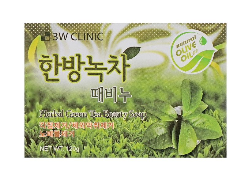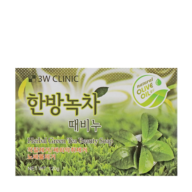 3W CLINIC Мыло туалетное с зеленым чаем herbal green tea beauty soap, 120 г