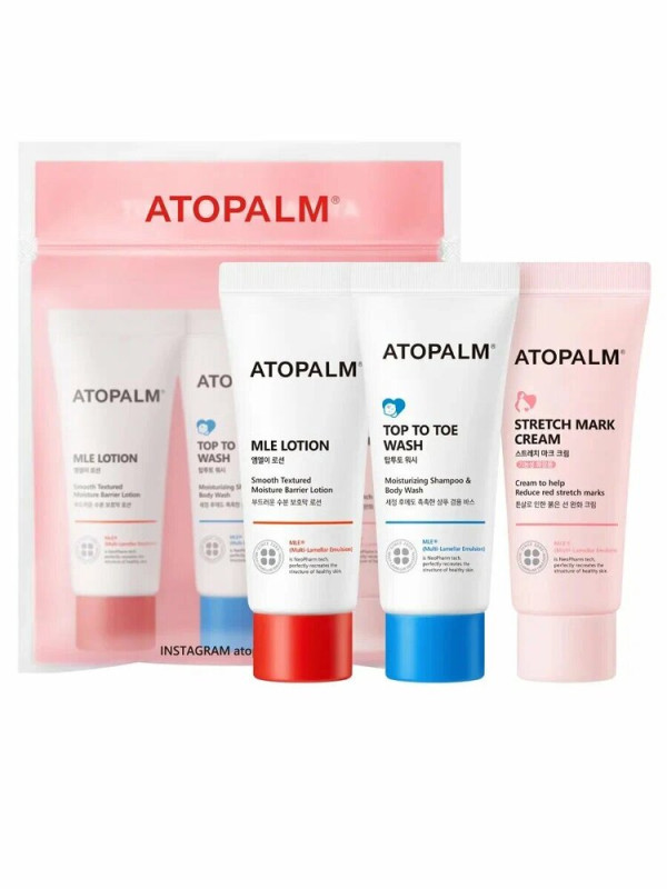 ATOPALM Набор дорожный: гель для душа, лосьон,крем против растяжек travel kit, 3 шт