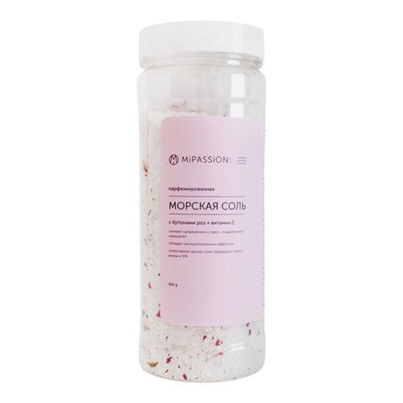 MI PASSION Соль морская для ванны с бутонами роз, 500 г