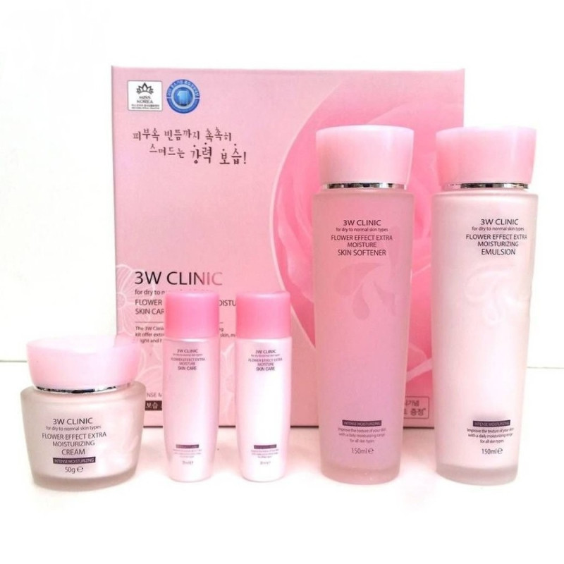 3W CLINIC Набор средств с цветочными экстрактами flower effect extra moisturizing skin care set