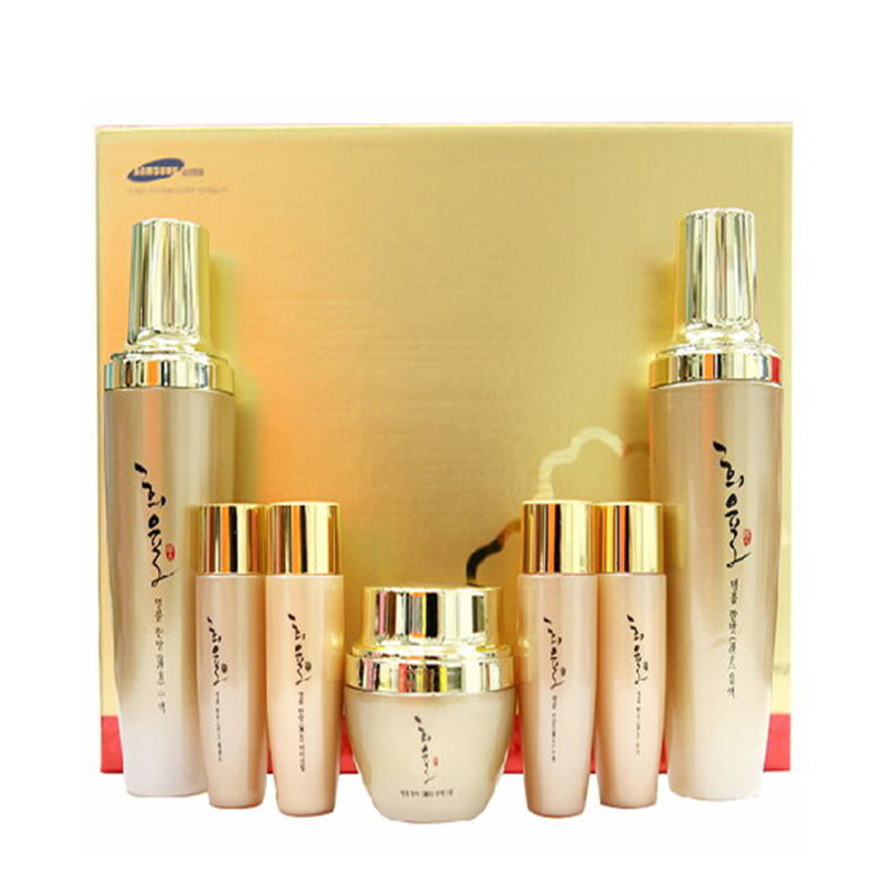 Объем: тонер 130 мл. + 30 мл.; эмульсия 130 мл. + 30 мл.; крем для лица 50 г.; эссенция 30 мл.; крем для кожи вокруг глаз 30 г.
