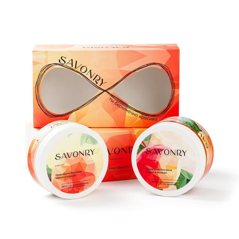 Разрешите себе роскошь ухода с набором Персик и тимьян и погрузитесь в мир спокойствия и благополучия.