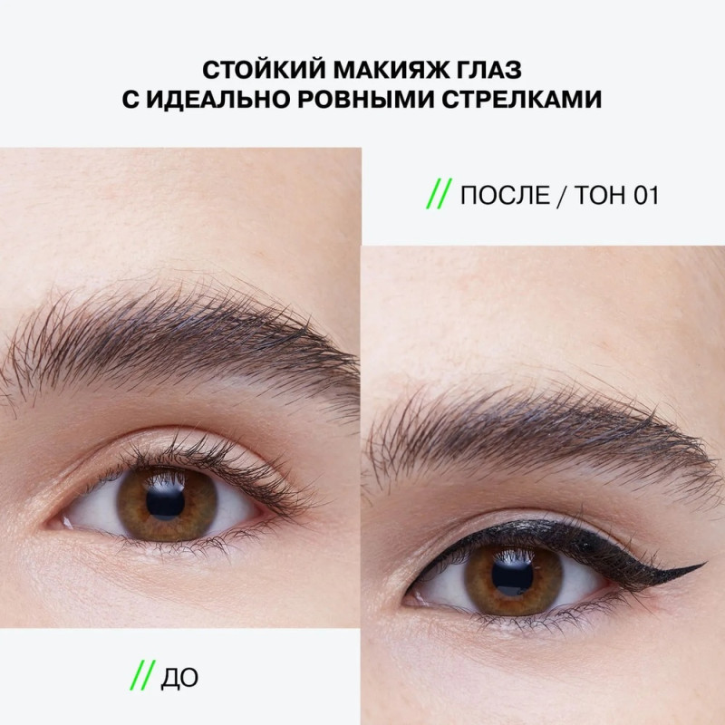 Встряхните подводку перед использованием. Наносите с помощью аппликатора тонкой линией по линии роста ресниц на подвижное веко.