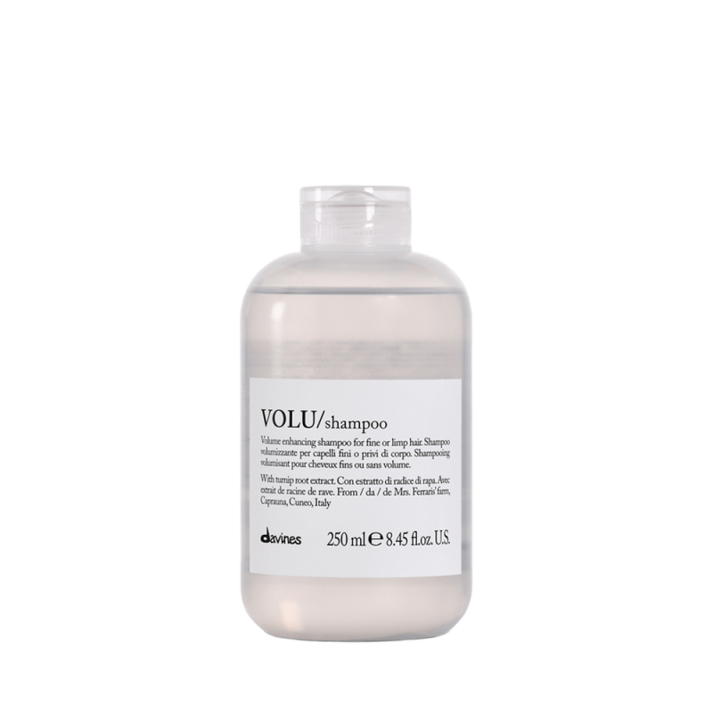 Шампунь Davines VOLU Shampoo — мягкое очищающее средство для тонких и ослабленных волос, которым не хватает плотности. Не утяжеляет, придаёт прикорневой объем, делает пряди визуально более густыми и живыми с первого применения.