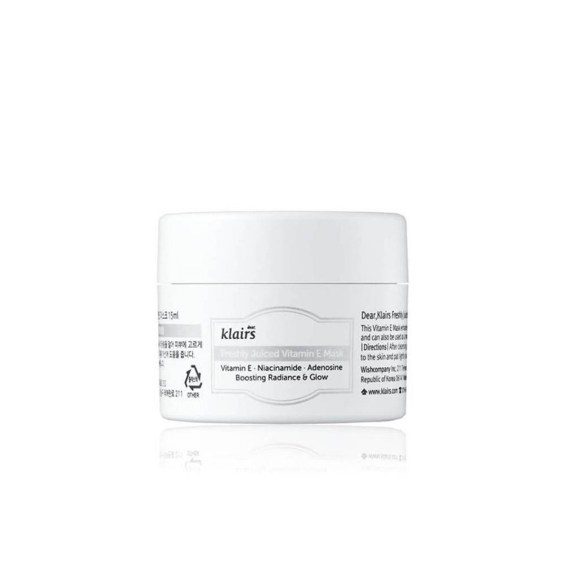Витаминная маска для сияния кожи Dear, Klairs Freshly Juiced Vitamin E Mask оказывает интенсивное питательное и увлажняющее действие. Основное свойство продукта — придание коже здорового сияния, избавление от тусклости. Средство смягчает кожу, далает ее гладкой, упругой, повышает эластичность и придает бархатистость.