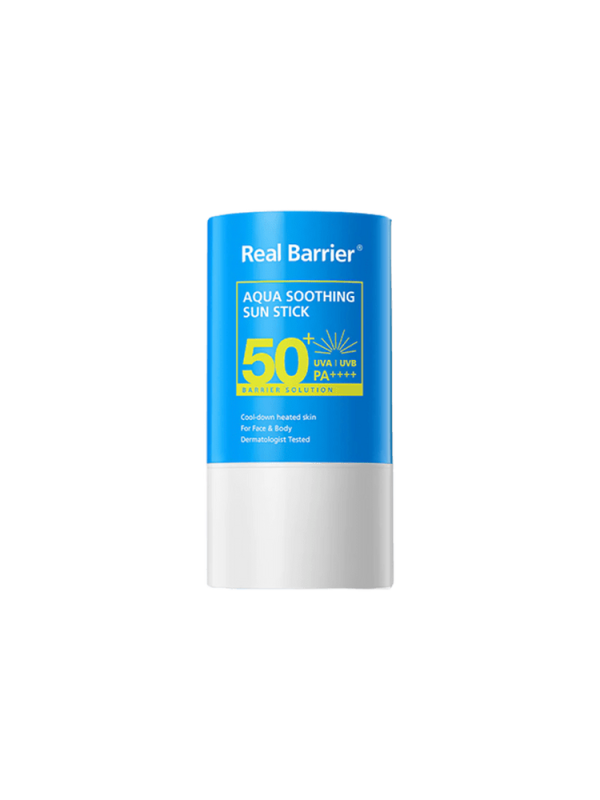 Солнцезащитный стик Real Barrier Aqua Soothing Sun Stick SPF50+PA++++ приятно охлаждает при нанесении, увлажняет и защищает от UVA- и UVB-лучей, предотвращает солнечные ожоги, появление пигментации и фотостарение. Снижает температуру кожи на 1.7°C.