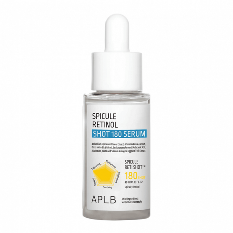 • Обновляющая сыворотка для лица со спикулами и ретинолом APLB Spicule Retinol Shot 180 Serum активно работает в глубоких слоях эпидермиса, улучшая общее состояние кожи и придавая ей здоровое сияние.