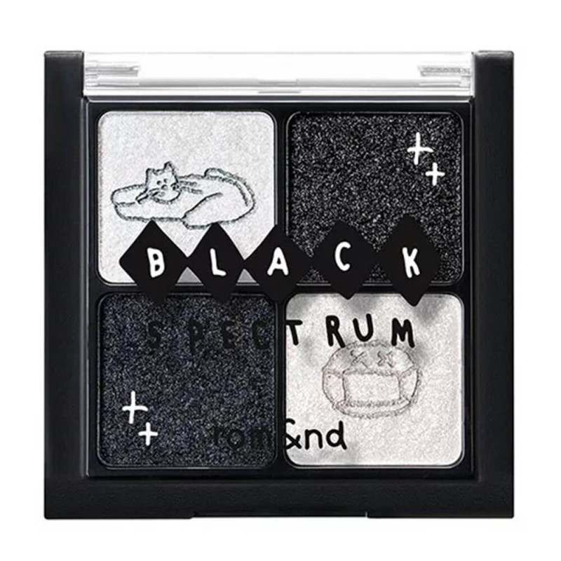 • Лимитированная палетка теней для век rom&nd X Inapsquare Better Than Eyes — это продукт в стильном дизайне от rom&nd в коллаборации с арт-проектом Inapsquare. Содержит 4 глиттерных оттенка с крупными и мелкими сияющими частицами — 2 чёрных и 2 светлых с перламутровым сиянием. Глиттеры можно наносить поверх матовых теней, использовать самостоятельно или в качестве хайлайтера.