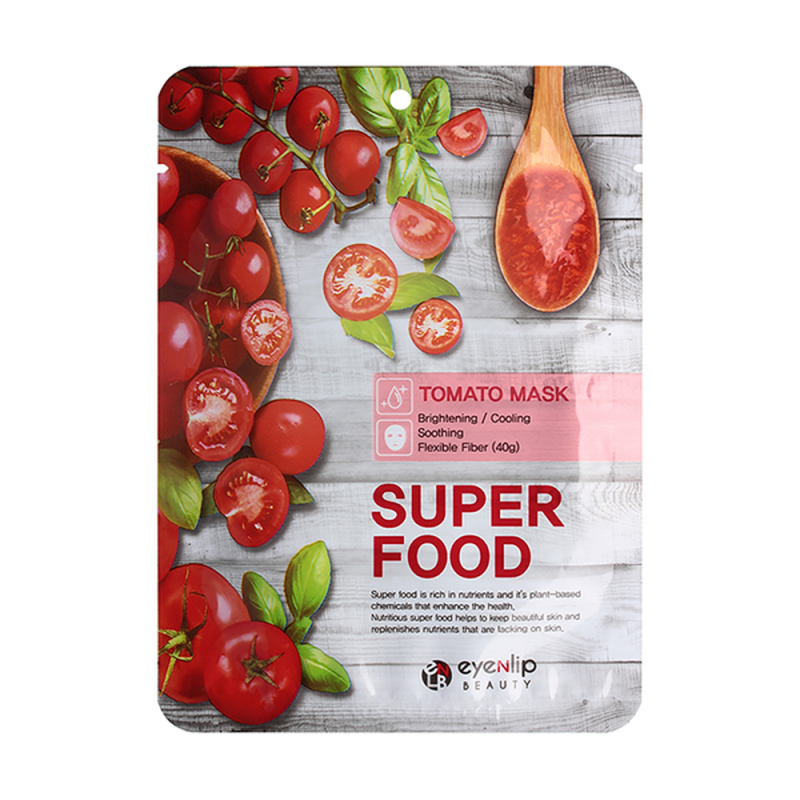 Компания по производству косметики Eyenlip выпускает ухаживающие средства для всех типов кожи. Тканевая маска для лица Super Food Tomato Mask способствует эффективному питанию и увлажнению. Экстракт томата укрепляет кожу, подтягивает контуры, выравнивает цвет лица и осветляет пигментные пятна. Благодаря активным компонентам, нормализуется работа сальных желез и исчезает неестественный жирный блеск.