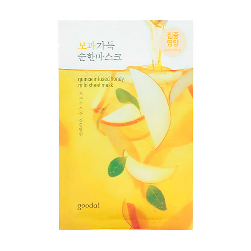 Тканевая маска c экстрактом айвы и мёдом Goodal Quince Infused Honey Mild Sheet Mask увлажняет, питает, разглаживает, выравнивает тон и слегка осветляет.