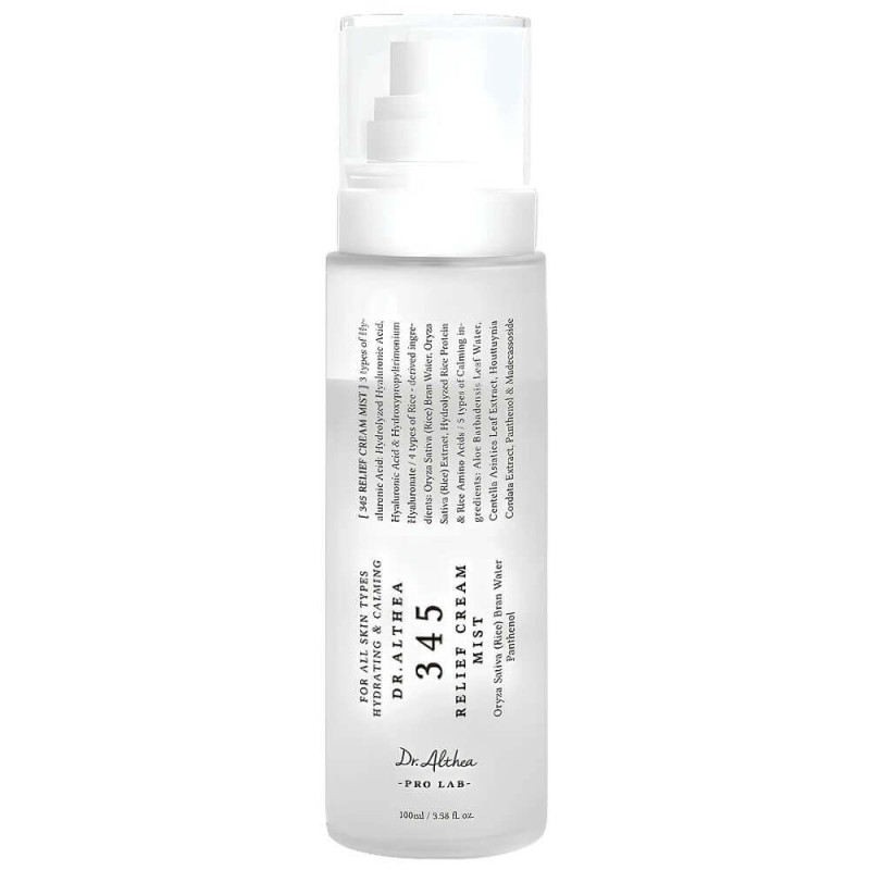 Мист Dr. Althea 345 Relief Cream Mist сочетает функции увлажняющего тоника и лёгкого крема. Мягкая эмульсионная текстура распределяется тонкой вуалью, увлажняет, успокаивает, уменьшает покраснение.