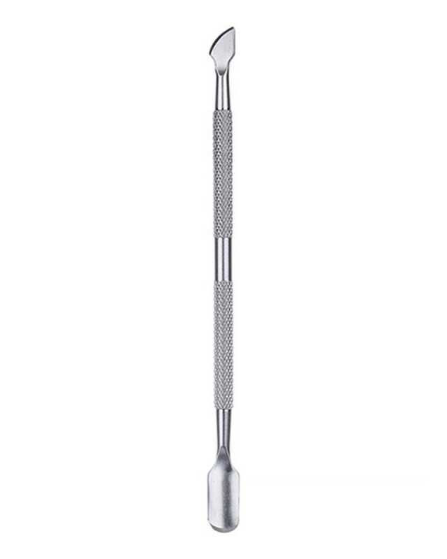 Пушер имеет две поверхности - лопатка для отодвигания кутикулы с одной стороны и топорик для ее обрезки - с другой.