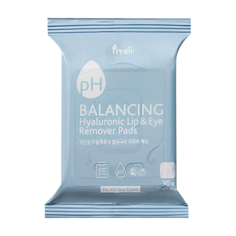 PRRETI Пэды для снятия макияжа ph balancing hyaluronic lip and eye remover pads, 30 шт