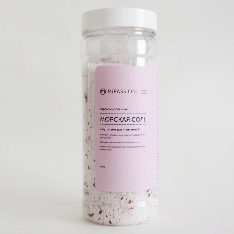 MI PASSION Соль морская для ванны с бутонами роз, 500 г