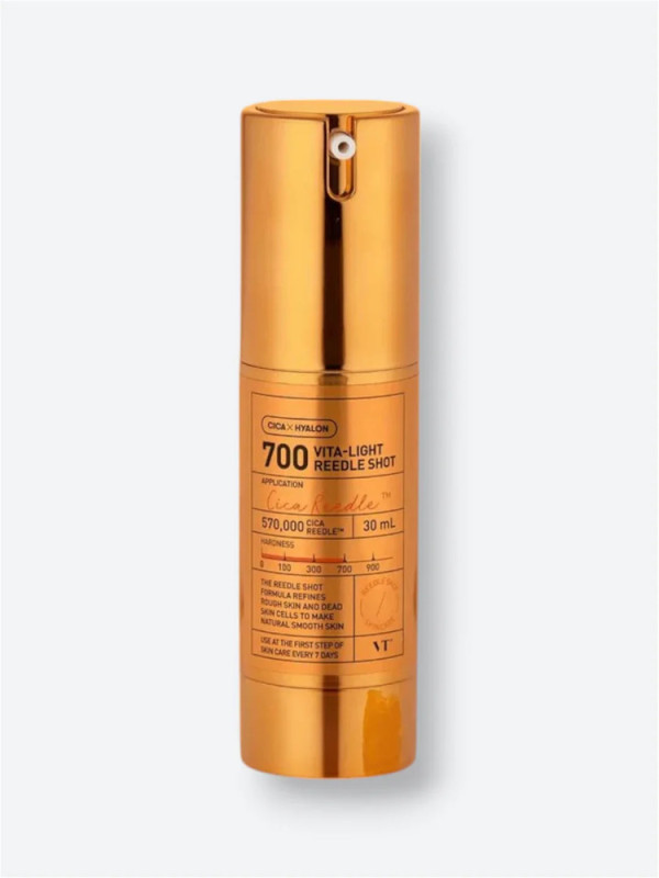 • VT COSMETICS VITA-LIGHT REEDLE SHOT 700 — специализированный продукт, предназначенный для осветления кожи и улучшения ее тона. Этот продукт создан для того, чтобы кожа оставалась сияющей, свежей и полной жизни. Он содержит активные ингредиенты, которые помогают уменьшить темные пятна и неровный тон кожи, одновременно освежая и осветляя ее.