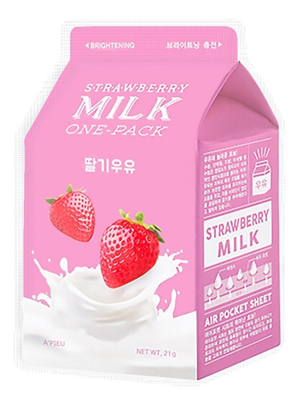 Интенсивный уход с соблазнительным ароматом клубники обеспечит косметическая компания A'PIEU с тканевой маской Strawberry Milk One-Pack. Оригинальная упаковка в виде пакета с йогуртом – дань одному из главных ингредиентов средства – молочной эссенции.