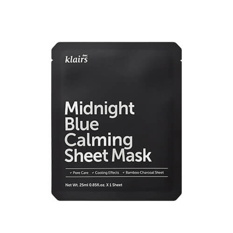 DEAR, KLAIRS Маска с охлаждающим действием midnight blue calming sheet mask, 25 мл